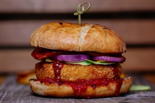 Beef meat, spicy sauce, onion, cheese, corn, tomatoes, bread, ketchup